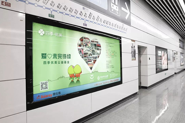 自5月20日起,四季優(yōu)美“助學(xué)篇”燈箱公益廣告正式亮相深圳。20處廣告投放點(diǎn)遍布深圳市地鐵三號(hào)線田貝、翠竹、曬布、紅嶺、華新、少年宮、福田、購(gòu)物公園、石廈9個(gè)站點(diǎn),地鐵四號(hào)線龍華、福田口岸、福民、市民中心4個(gè)站點(diǎn),全天展示,畫面簡(jiǎn)潔素雅,華燈璀璨時(shí)刻更顯醒目。