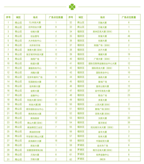 ▲ Total number of locations of Sijiyoumei office building advertisement in Shenzhen is 500.