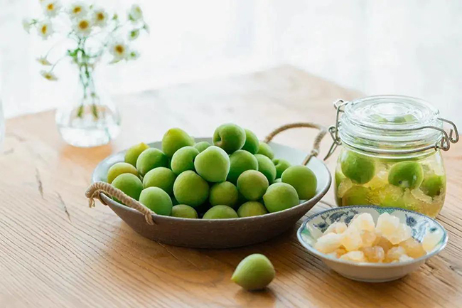 清代醫學家顧仲在《養小錄》提及,“三伏取熟梅搗爛,不見水,不加鹽,曬十日。去核及皮,加紫蘇,再曬十日收貯。用時或鹽或糖,代醋亦精”。青梅天生酸澀,不宜直接食用。對吃極具天賦的老祖宗們發明了許多加工方式,或是漬梅為脯,或是煮梅為湯,或是釀梅為醬,或是浸梅為酒,凡此種種,既飽了口福,又對身體頗多裨益。