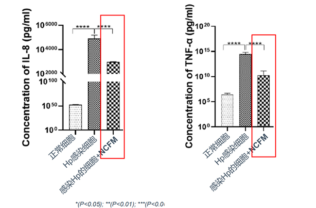 NCFM能顯著降低Hp感染引起的炎癥因子,降低Hp感染引起的胃部炎癥風險。
